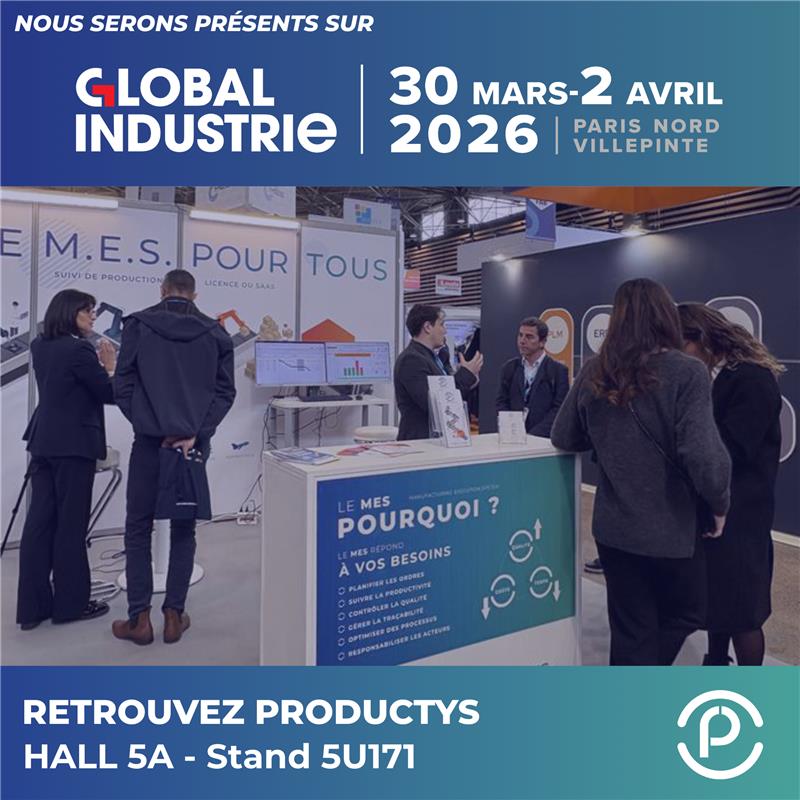 Rejoignez-nous à Global Industrie 2026 à Paris Nord Villepinte pour découvrir les dernières innovations Productys dédiées à la performance industrielle.